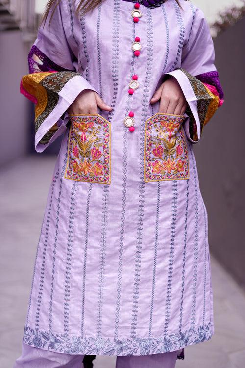 Upgrade your style effortlessly with our Cotton Double Pocket Self Embroidery 2-Piece Set. Order now and embrace a new level of elegance!